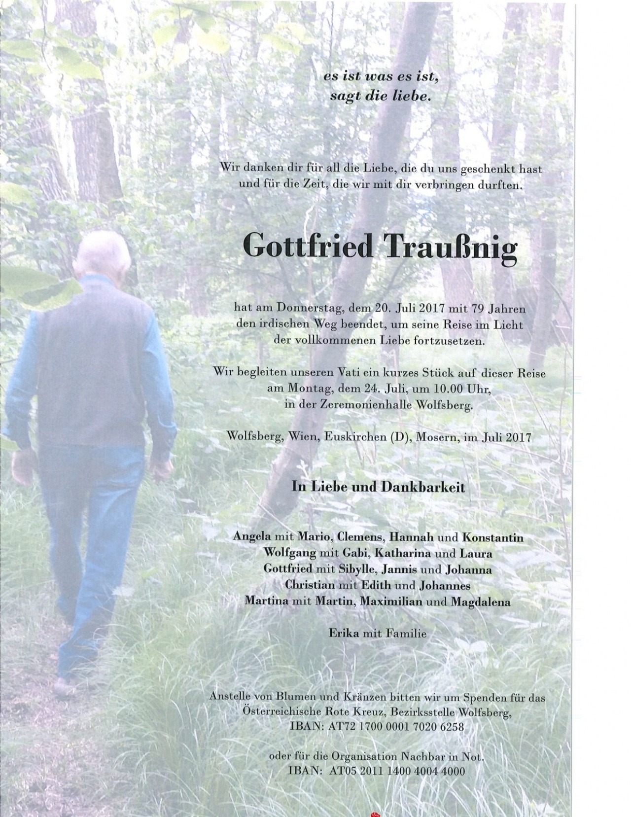 Wir danken allen, die sich in der Trauer mit uns verbunden fühlen und Ihre Anteilnahme auf so liebevolle Weise zum Ausdruck bringen.
