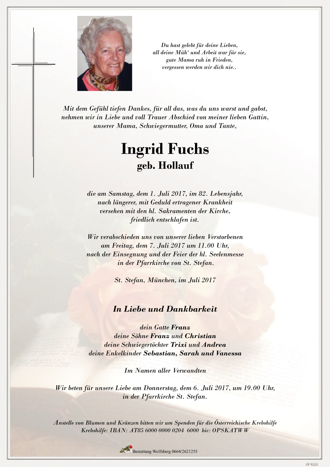 Aufbahrung: 06.07.2017 um 13.00 Uhr in der Zeremonienhalle Wolfsberg