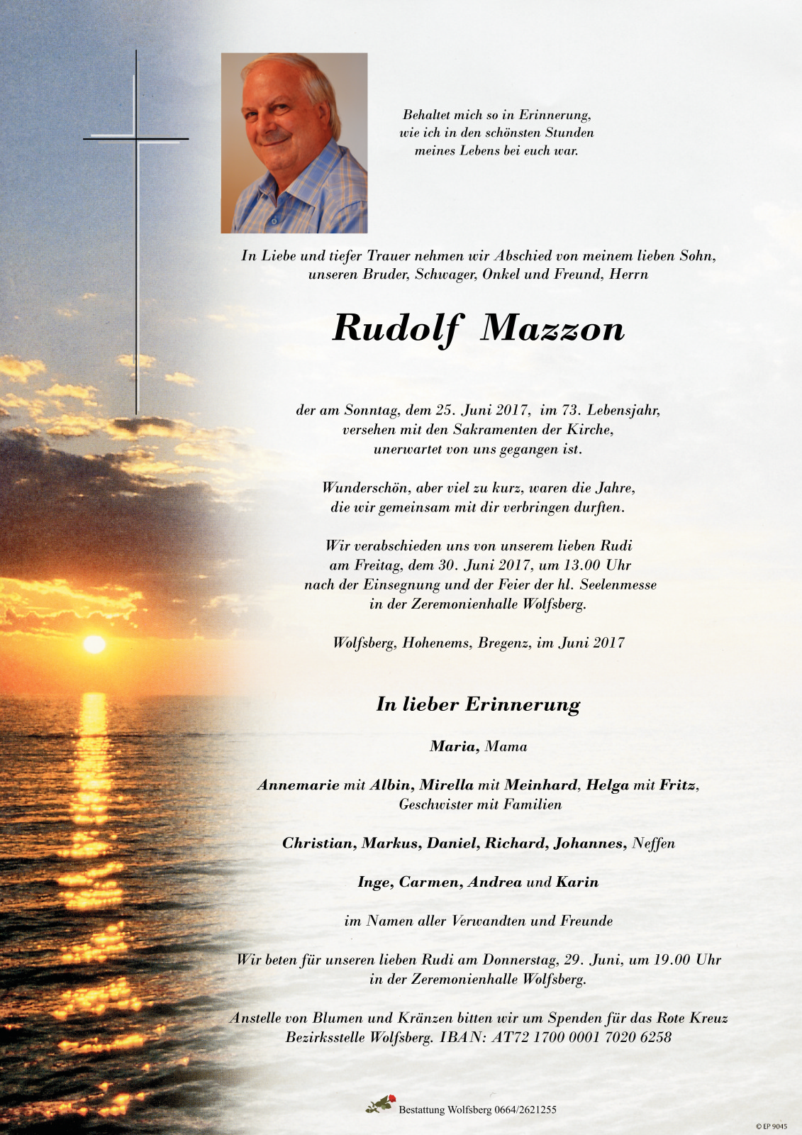 Aufbahrung: 29.06.2017 um 19.00 Uhr in der Zeremonienhalle Wolfsberg
