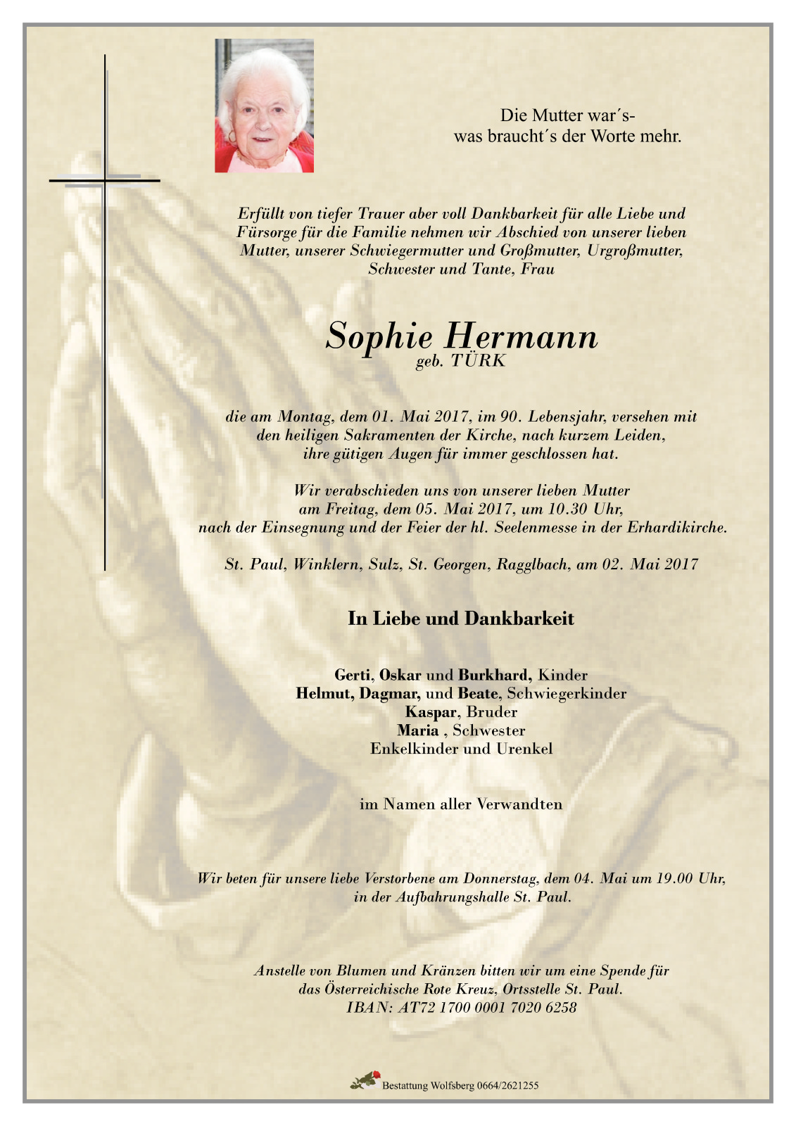 Aufbahrung: 04.05.2017 um 15.00 Uhr in St. Paul