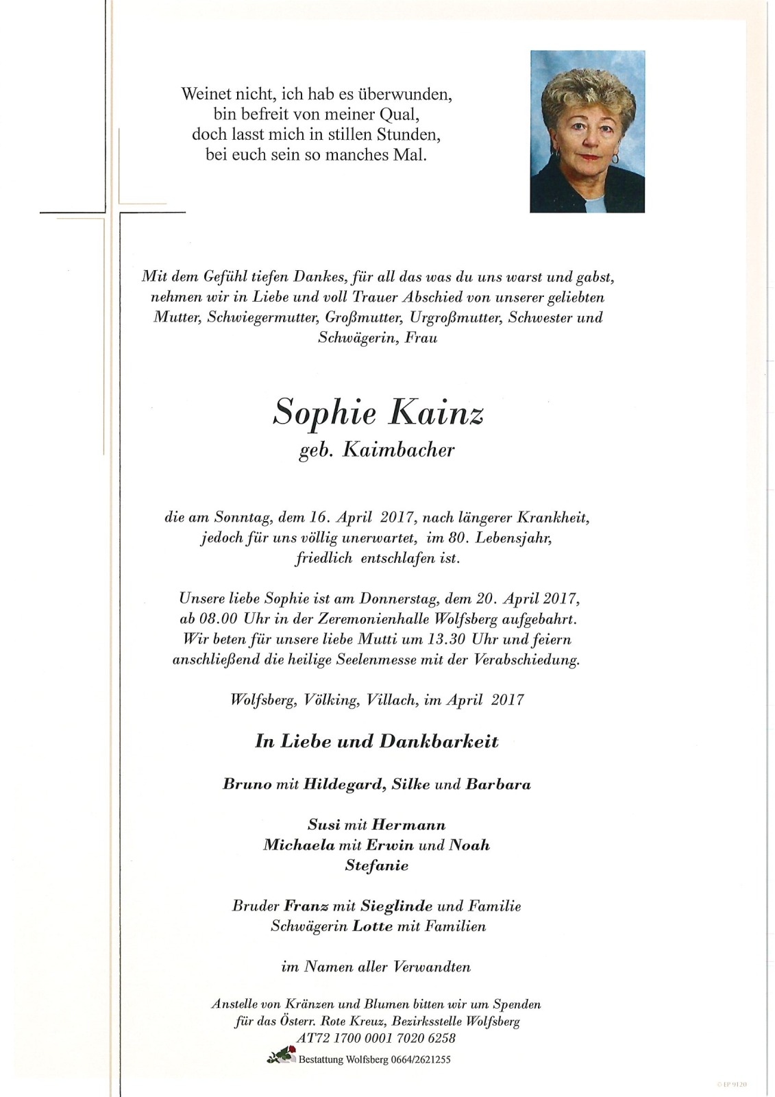 Aufbahrung: 20.04.2017 um 08.00 Uhr in der Zeremonienhalle Wolfsberg